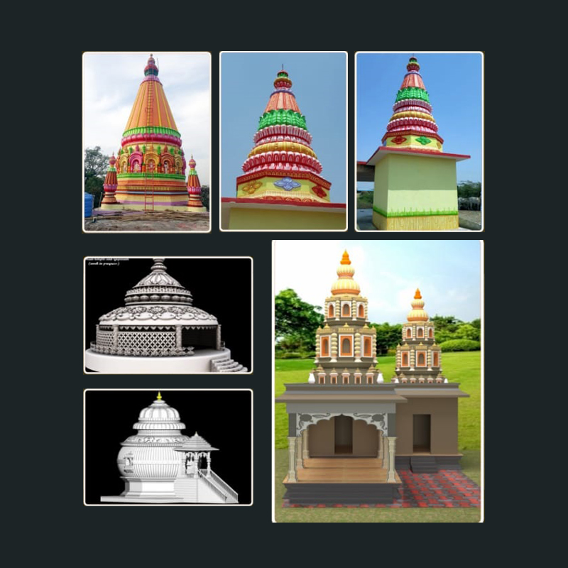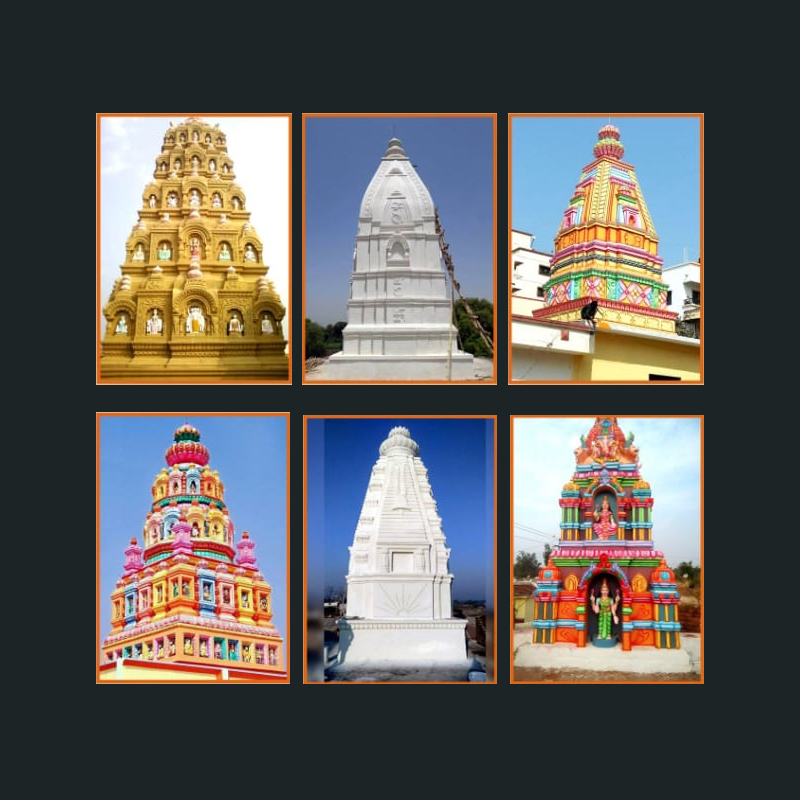 Our temple shikhars are made from high‑quality FRP (Fiber Reinforced Plastic), which ensures durability, weather resistance, and long‑lasting beauty. Each design follows sacred guidelines inspired by Shilpa Shastra and Vastu Shastra, making your temple not only visually stunning but also spiritually significant.